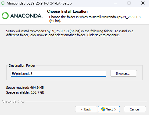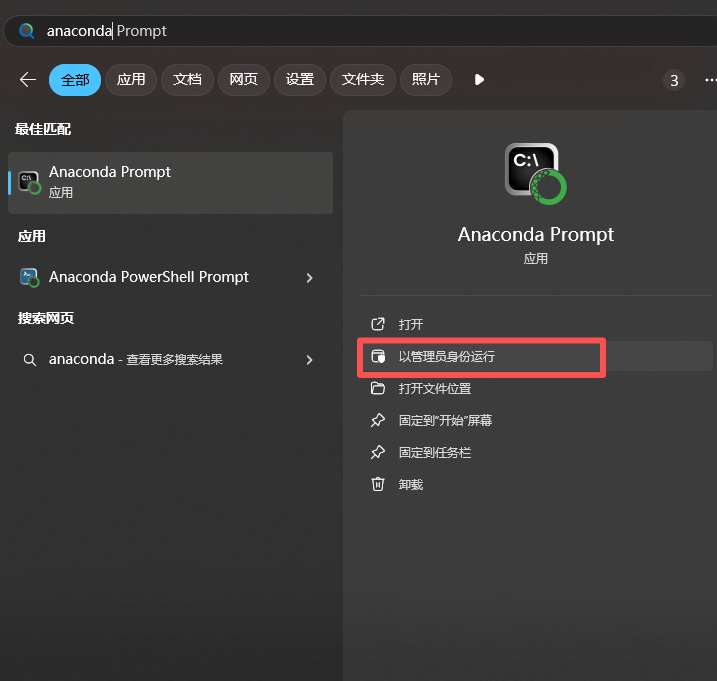 一直next就可以了,这里注意一下选择Just Me,可以避免一些问题。这个是ai的解释一般选 Just Me —— 安装在自己用户目录下,不需要管理员权限,最稳妥也最不容易出权限和环境冲突问题;只有在多用户共用同一台机器、并且你明确需要所有账户共享 conda 时,才选 All Users。