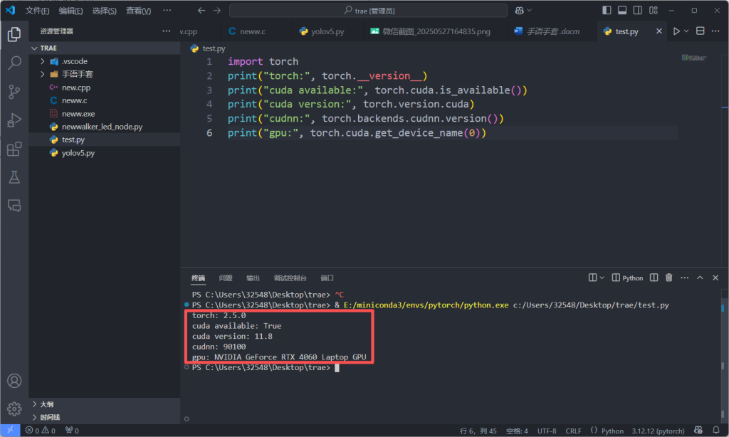 如果都有输出,并且cuda availablel: True说明我们安装成功了呢😘。