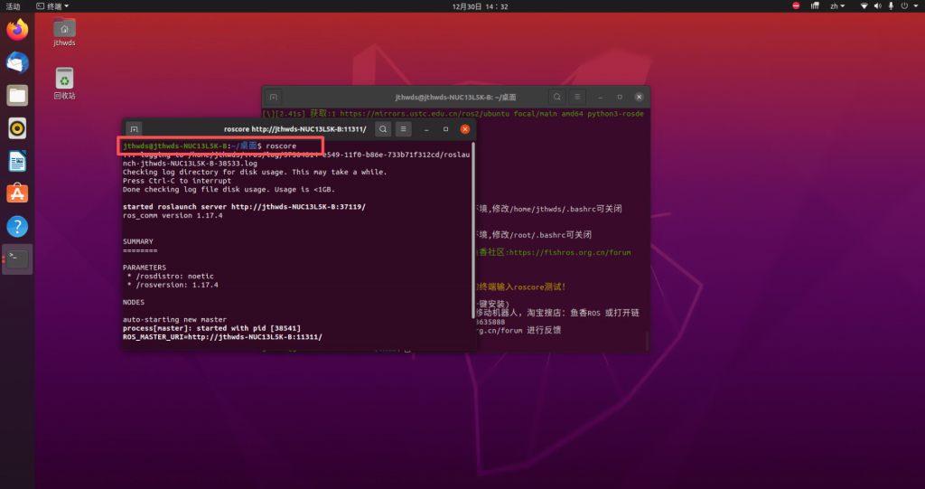 新打开一个终端输入roscore,出现下面的情况就说明成功了。